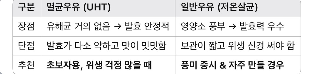 저지방보다는 일반우유가 발효도 잘 되고 맛도 부드러워요.