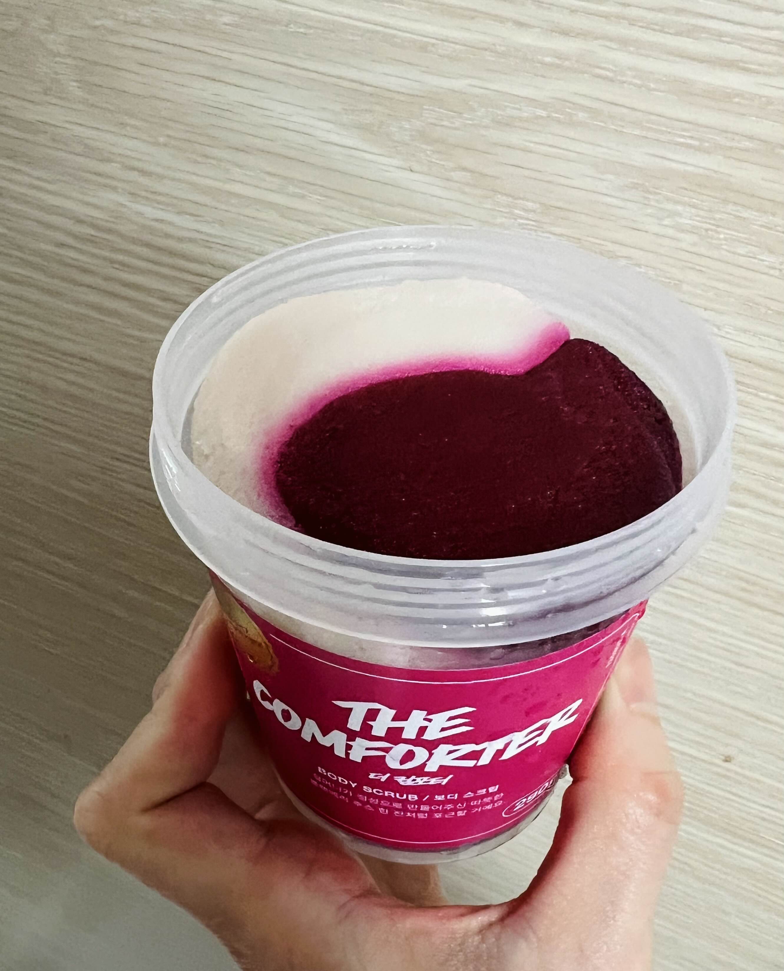 오늘은 제가 요즘 샤워할 때마다 기분전환으로 애용하고 있는 러쉬의 바디스크럽, 더 컴포터(The Comforter) 후기를 가져왔어요!