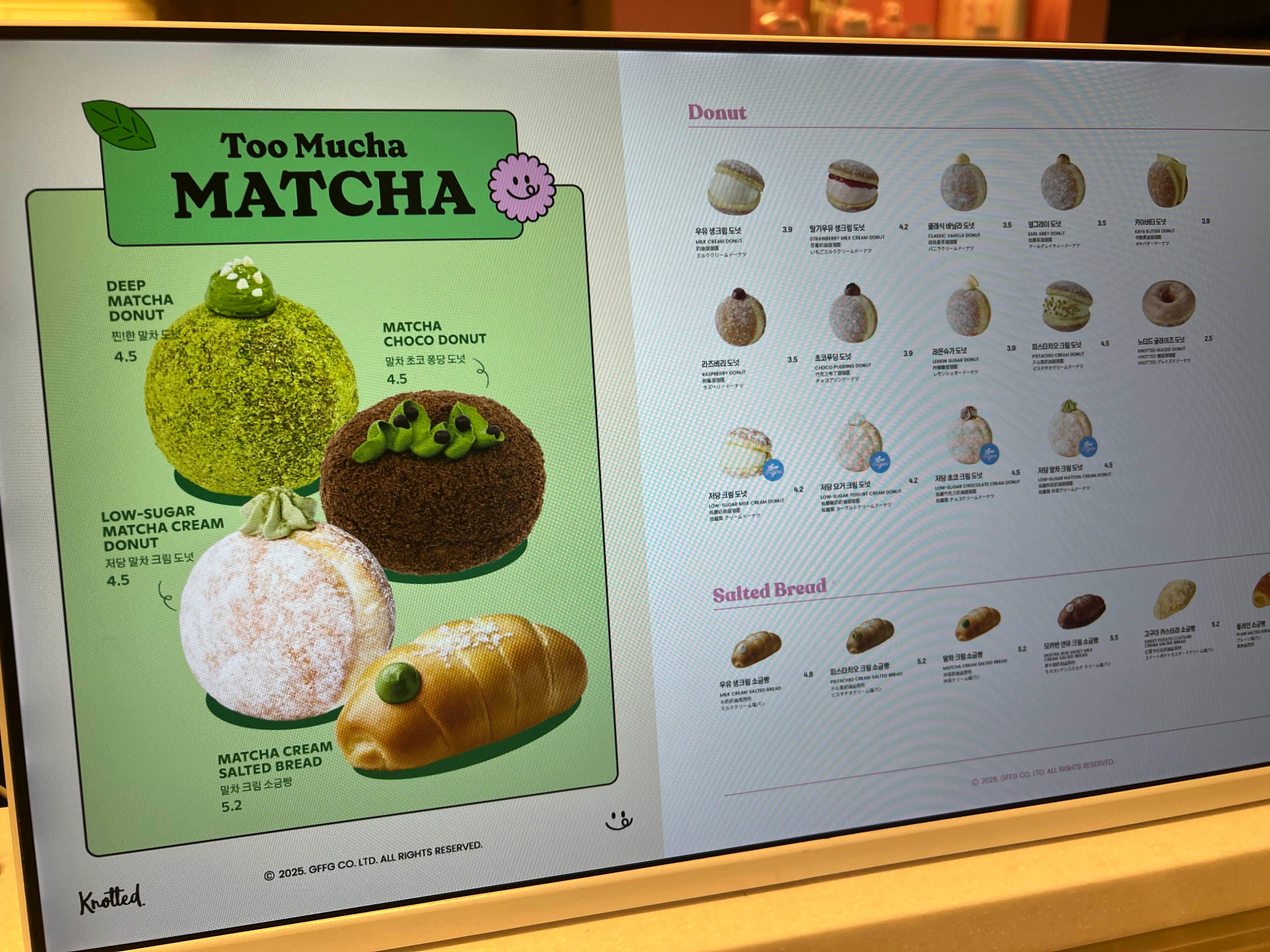 지난 주말, 안성 스타필드 구경하다가 달콤한 냄새에 이끌려 들어간 곳! 바로 노티드 도넛(Knotted). 늘 줄이 길다길래 궁금했는데, 이번엔 타이밍 좋게 웨이팅 거의 없이 입장! 👍👍
