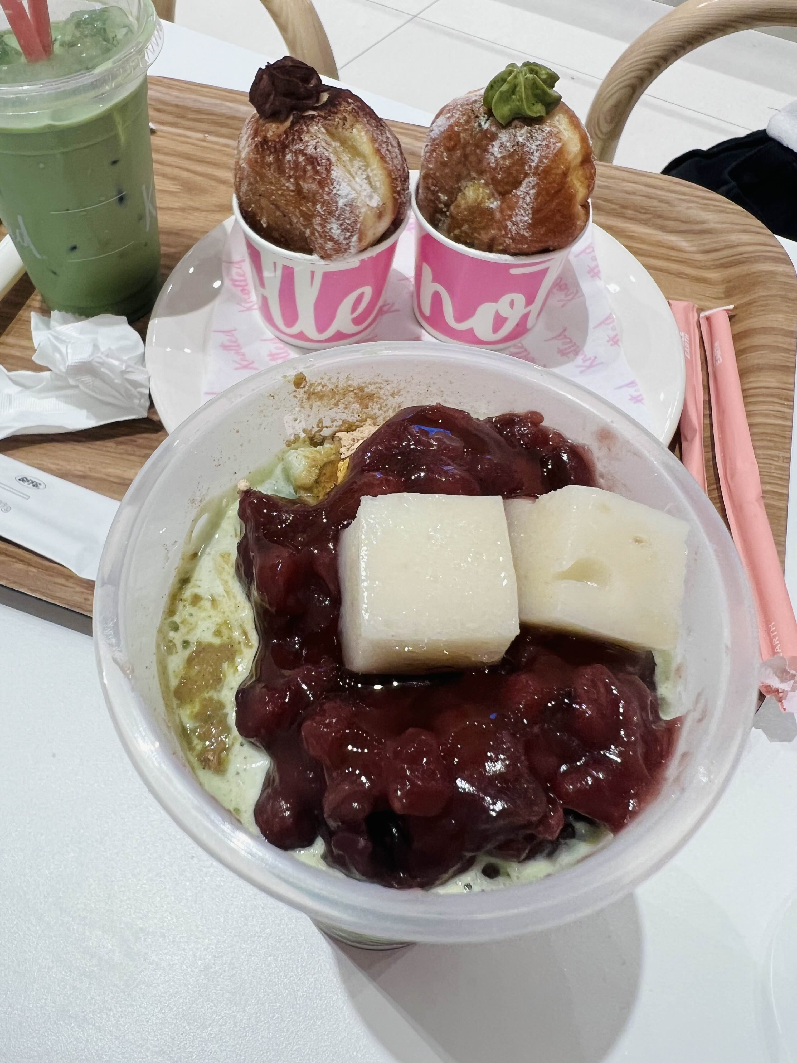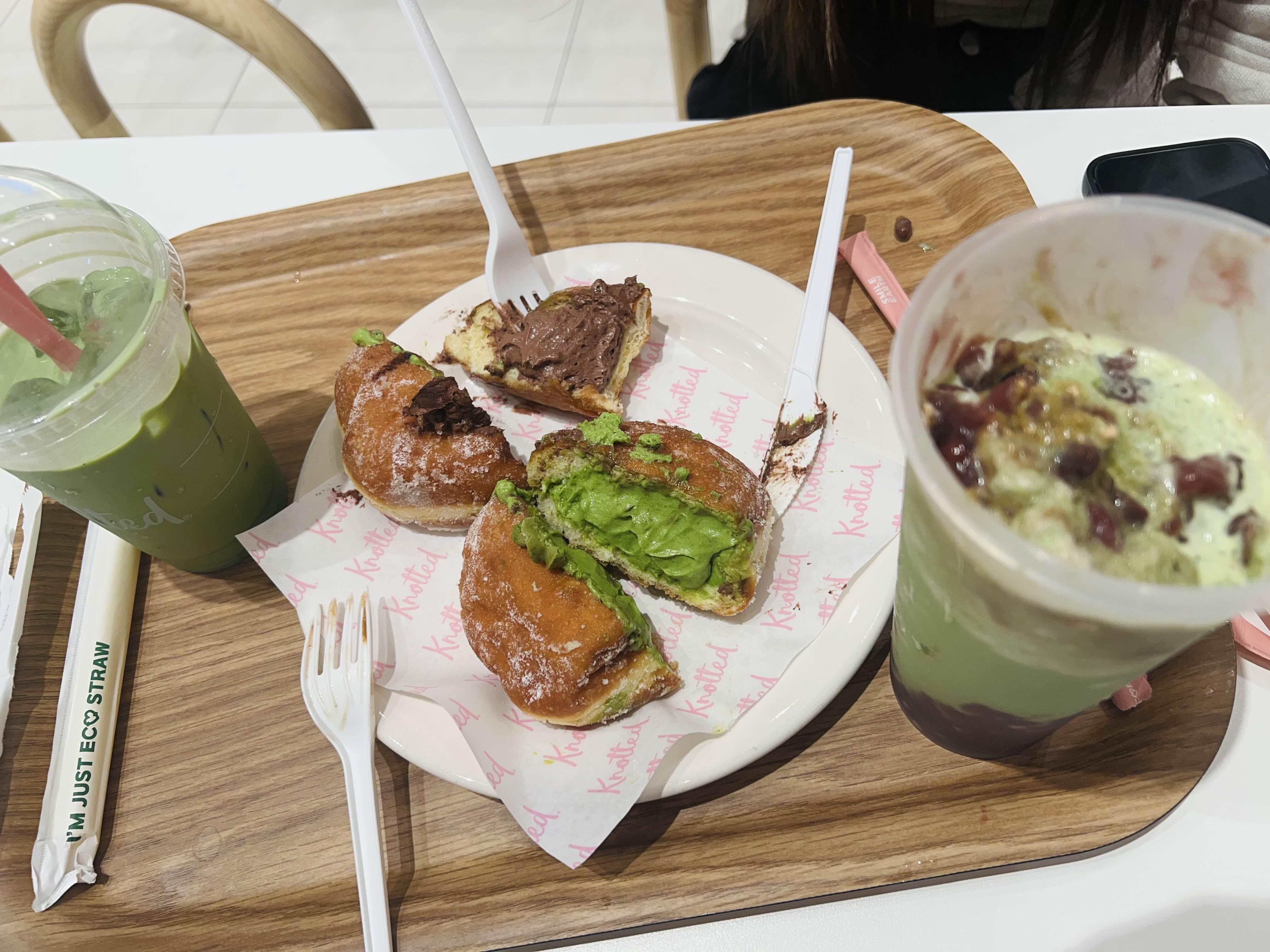 바로 말차라떼, 말차팥빙수, 말차도넛 3종세트 먹어봤어요. 초코도넛은 추가로 먹어봄!!! 🍩🍩