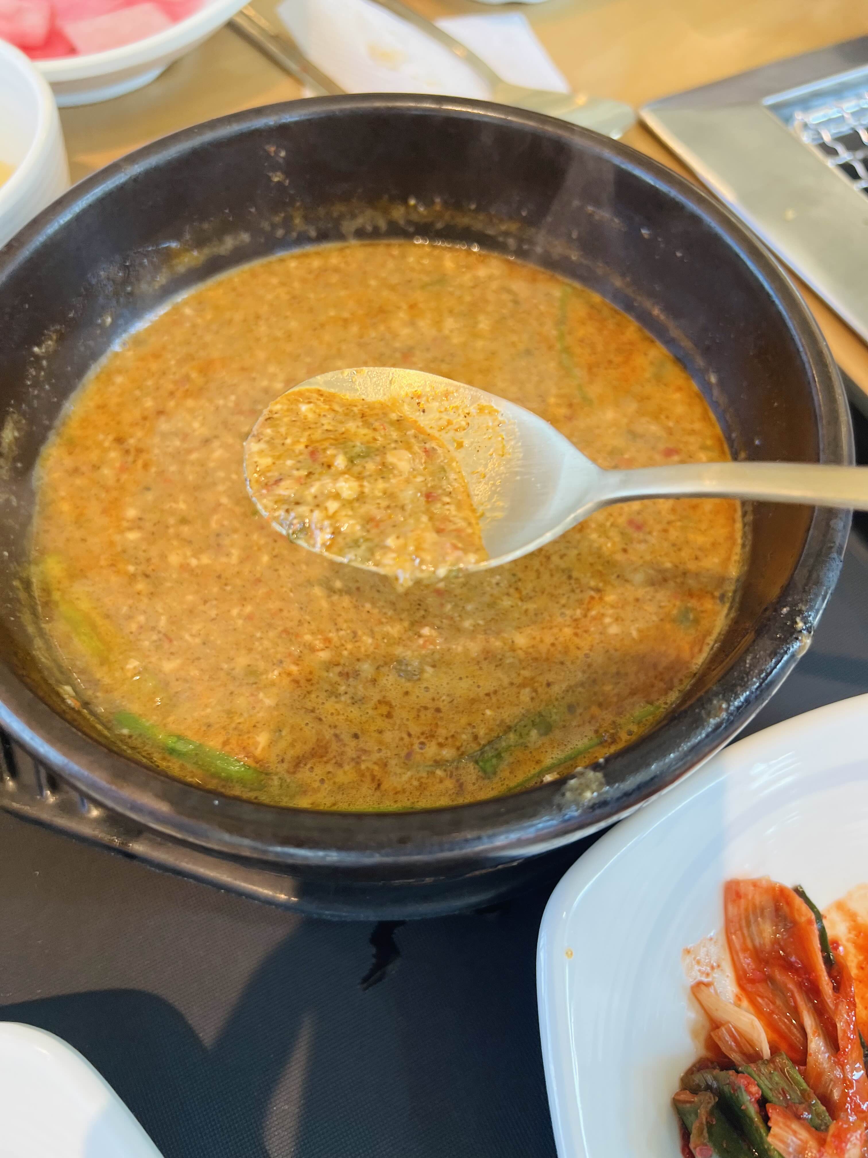 사진에 장어탕 비주얼이 된장의 콩이 갈려있는 느낌이죠? 그치만 된장찌개 맛?!? 이 나진 않은거 같았어요~~ 추어탕 같은 느낌이었죠~~~