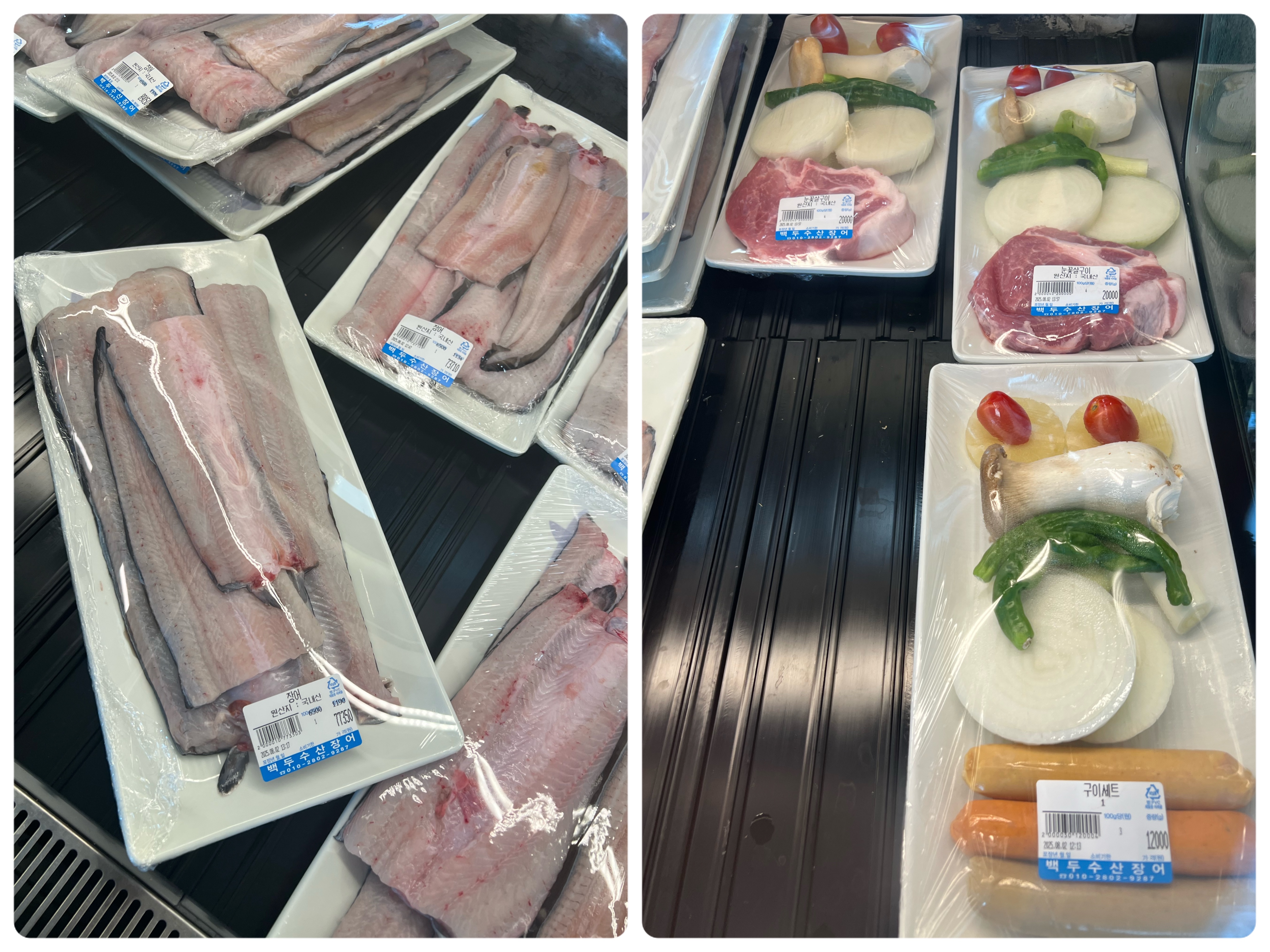 크기도 크고 한쪽엔 야채와 소세지와 돼지고기도 있었어요!! (장어 못먹는 분을 위해서 진열되 있는듯 하네요)